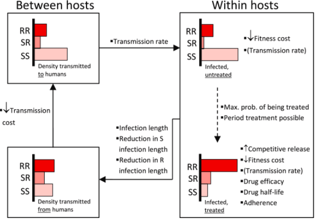 The beauty of developing a mathematical model with experts lies in the inspiring discussions. I learn about the key features and dynamics, while the experts are challenged to view their work from a fresh perspective. Then an initial model is created, which should be as simple as possible whilst capturing the dynamics of interest. The development from this initial model to one that meets the task is an iterative process. Guidance is provided via feedback where possible, but crucially the output from the model should reproduce the observed phenomena identified during the learning phase. For example, when modelling drug resistant malaria, I was told that drug resistant malaria has been observed in areas of low transmission first. Therefore, any model I created that didn’t capture this observed phenomenon was unsuitable, and additional modifications were necessary.